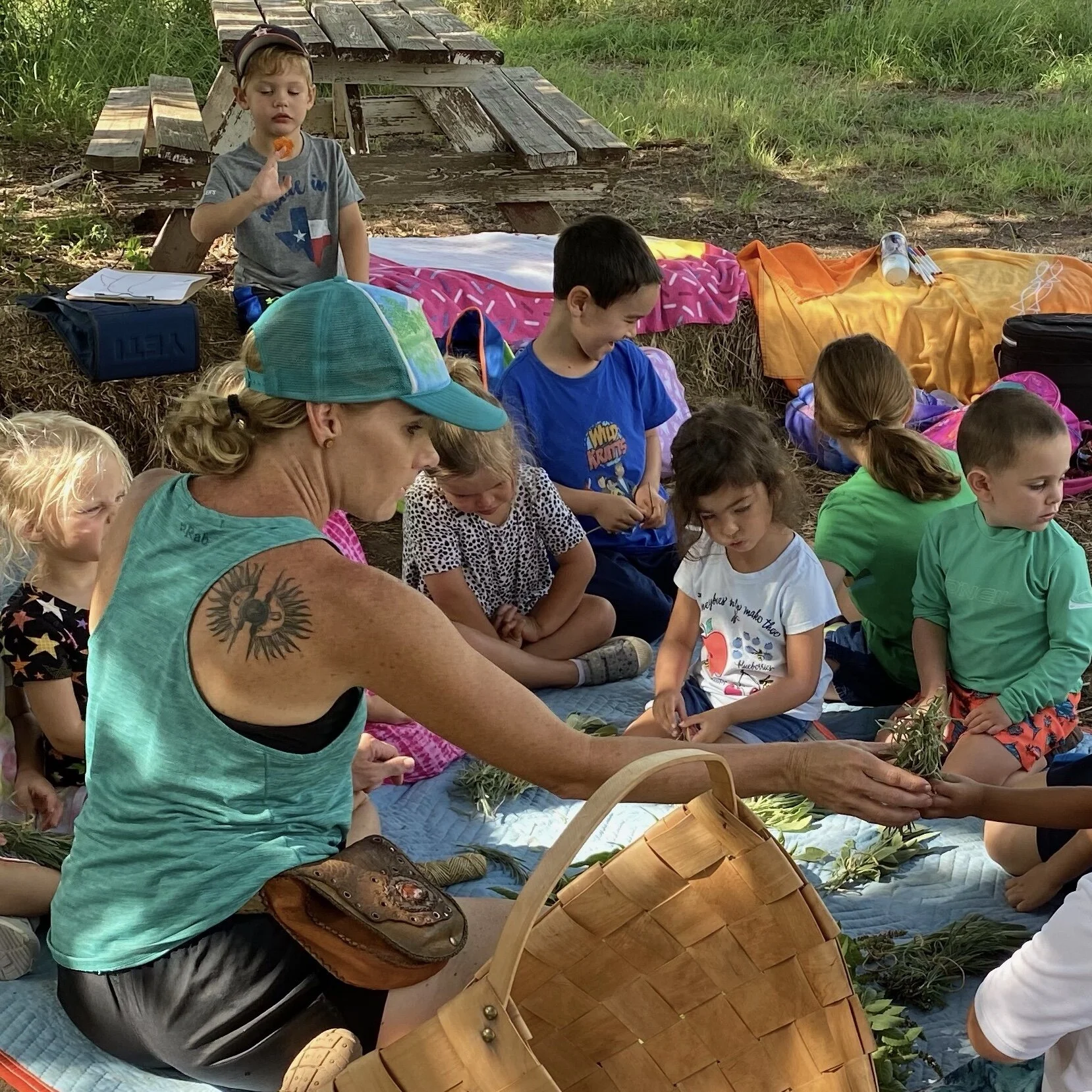 Wednesday was tomato day at farm camp. For farm chores, we took care of the chickens, harvested heirloom tomatoes and herbs, and helped mulch the herb beds. The Willows helped Ms. Tammy make herb bundles for our CSA boxes, then enjoyed a scavenger hunt. The Oaks taste tested the tomatoes they harvested, then took a hike in the hills behind our farm and enjoyed a picnic lunch with a beautiful view. After lunch, we enjoyed making pico de gallo and handmade tortillas.