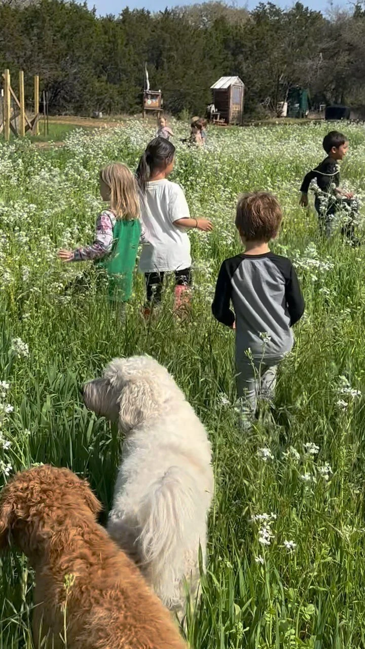 Our 100% outdoor program seeks to meet children at their developmental age through a unique curriculum inspired by Waldorf & Montessori Education, Nature-Based Education, and Wilderness Awareness Schools. Our Farm Explorer program gives our youngest students room for imaginative and explorative play and sensory engagement, while our Farm Builder program focuses on concrete life experiences to engage them in deep purposeful work. As we move up into middle and high school years, the Farm & Forage and Farm Apprenticeship programs give students the power of autonomy, deeper ecological knowledge, and provide the opportunity to learn the basics of holistic farming methods. We connect the students to how food is grown in the utmost sustainable & nutritious way while deepening their awareness of the natural world and connecting deeper with who they are and their role in this ecosystem.
