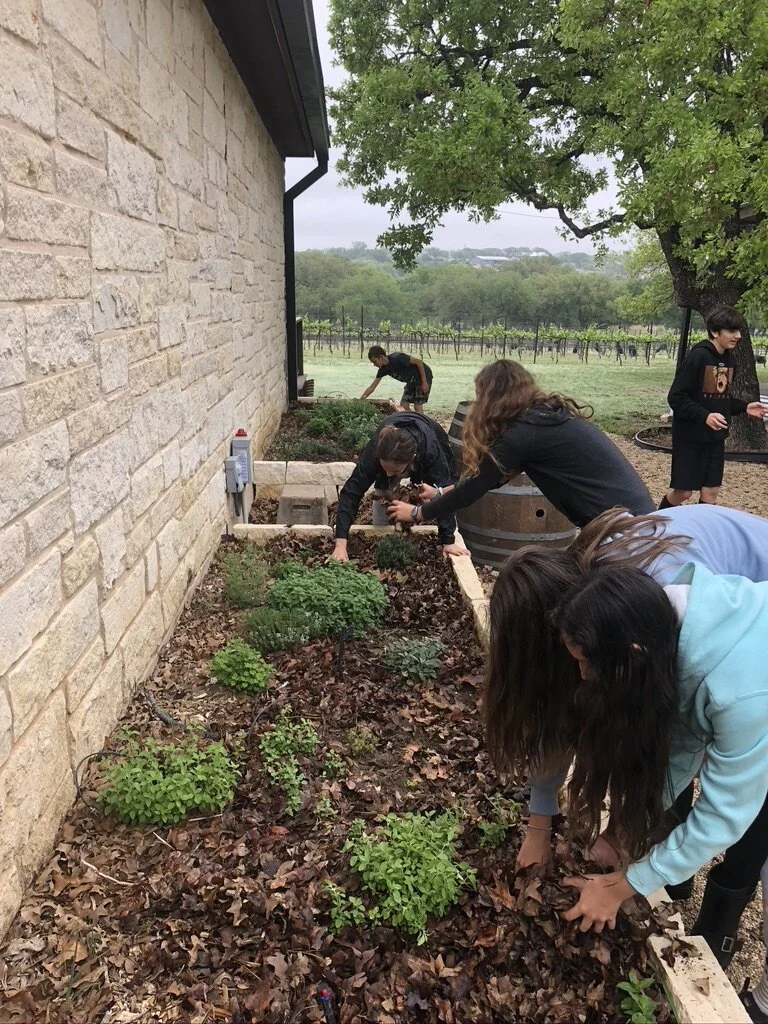 Due to a threat of rain and thunderstorms, we stayed close to the tasting room area in case we needed to move indoors. We studied seed anatomy, transplanted culinary herbs behind the vineyard house, explored native plants on the nearby cattle ranch, and wrapped up the day with games of “slap flower” with our plant ID cards.